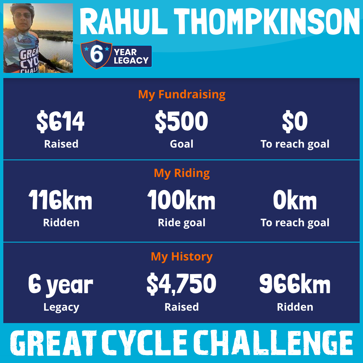 116 km Ridden$614 Raised2026