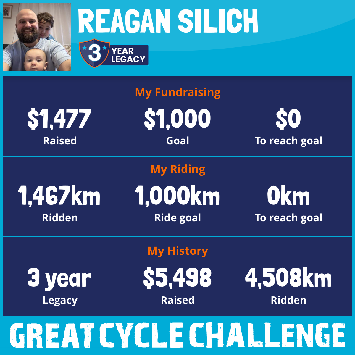 1,467 km Ridden$1,477 Raised2026
