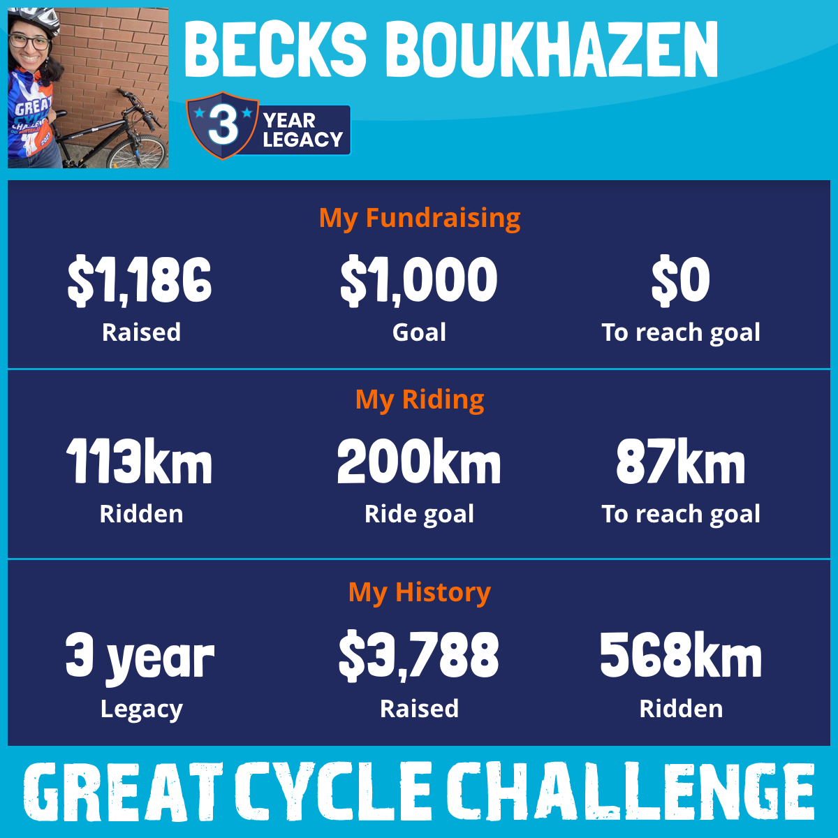 113 km Ridden$1,186 Raised2026