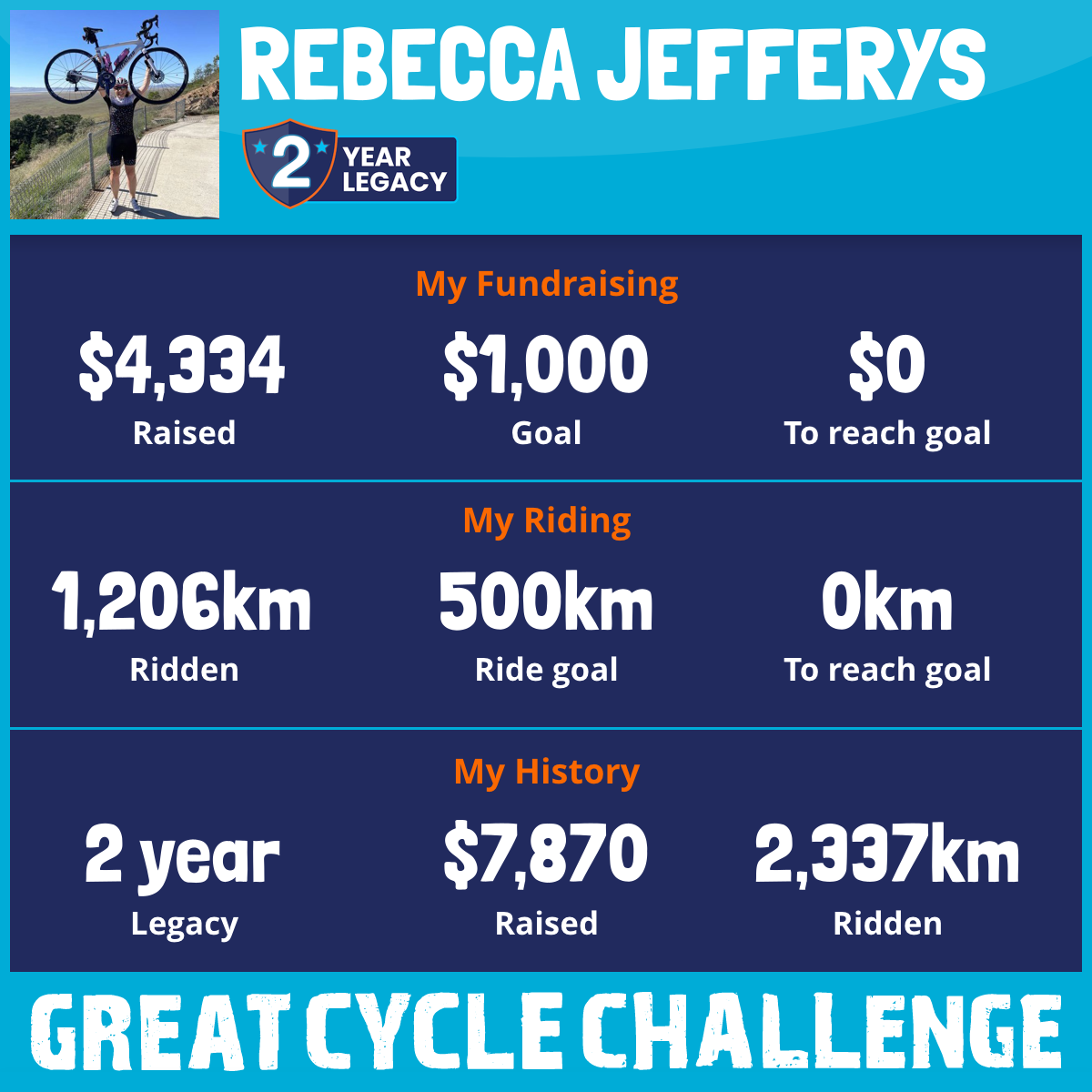1,206 km Ridden$4,334 Raised2026