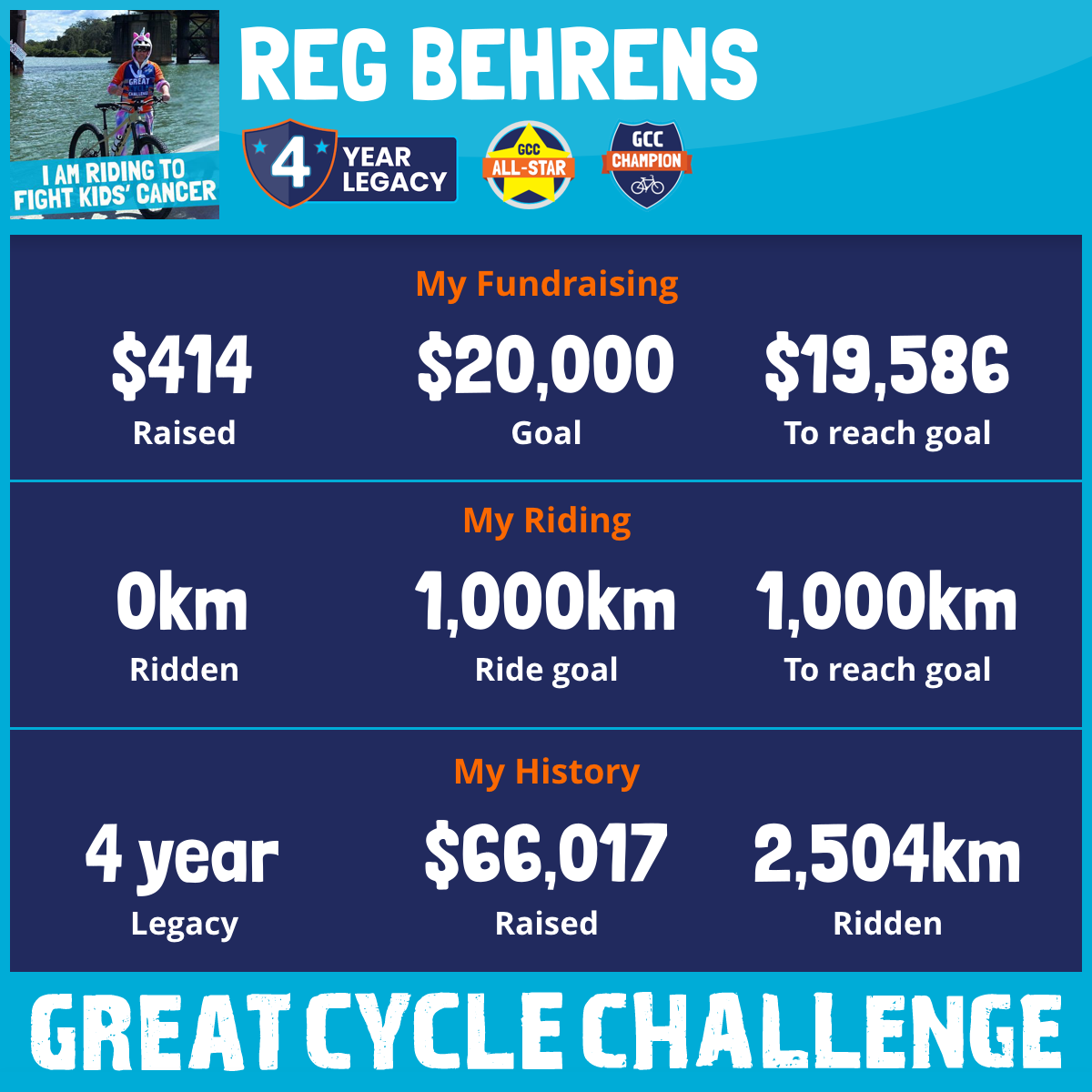 And so I am riding and raising funds to support the Children's Medical Research Institute to continue their work into the prevention, diagnosis, treatment and finding a cure for childhood cancer.