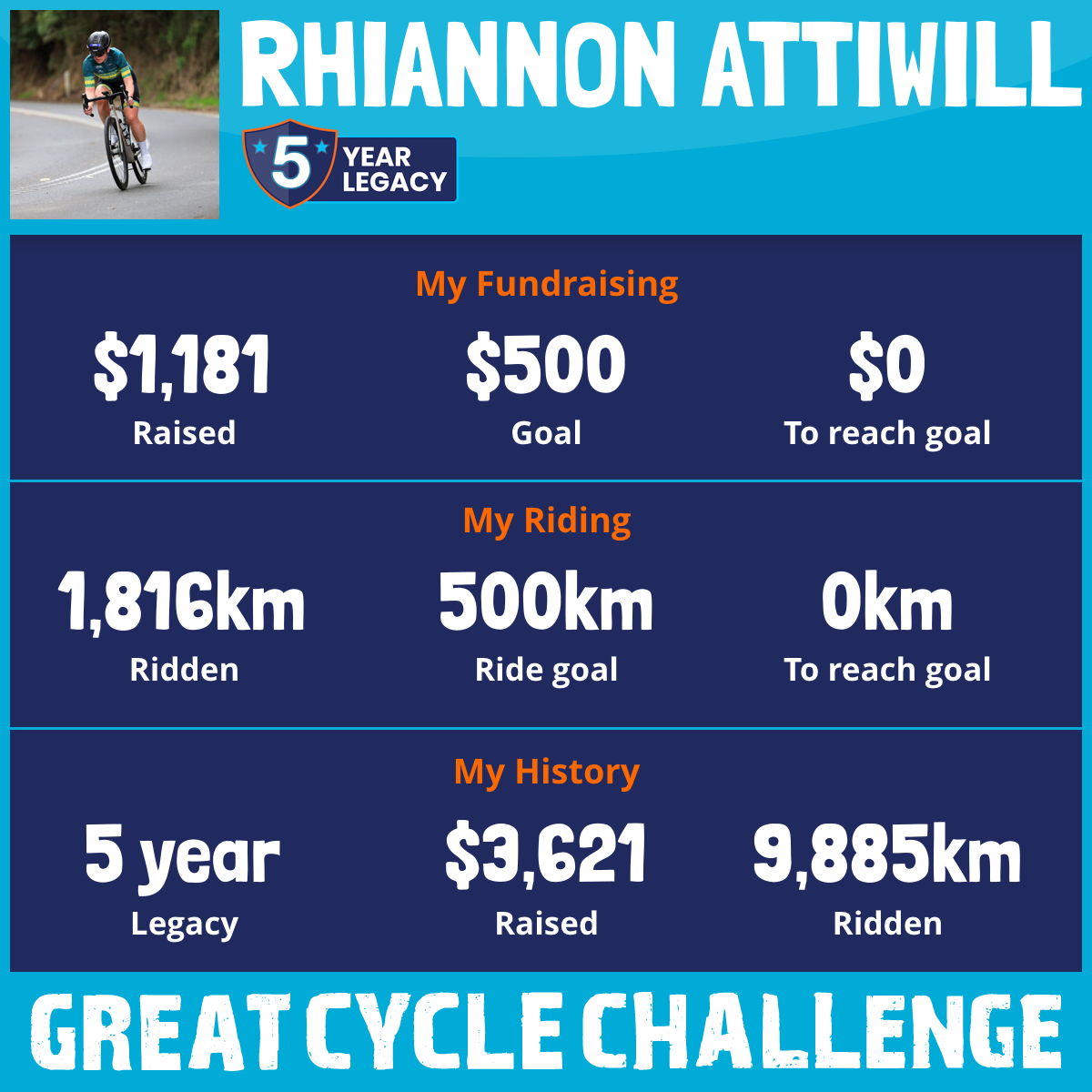 1,816 km Ridden$1,181 Raised2026