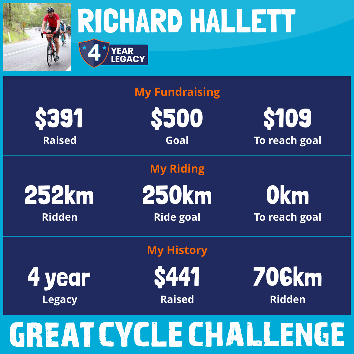 252 km Ridden$391 Raised2026