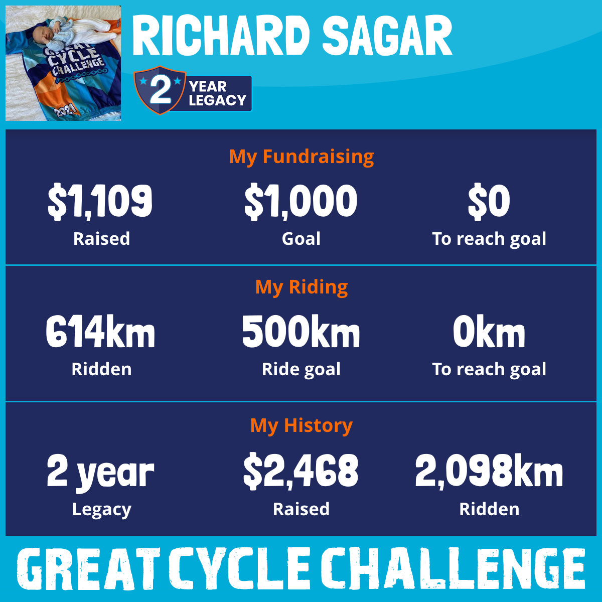1,483 km Ridden$1,359 Raised2021