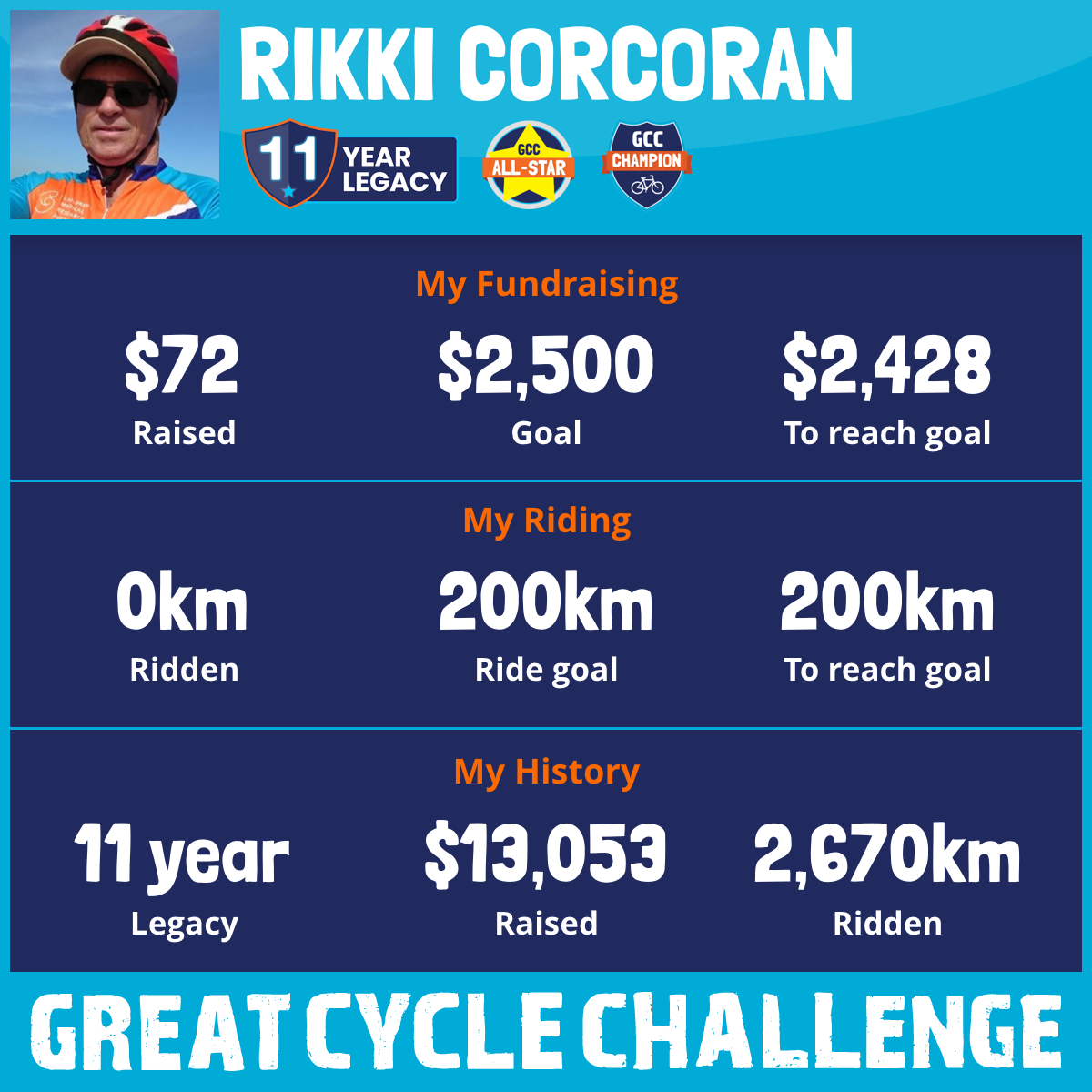253 km Ridden$1,176 Raised2020