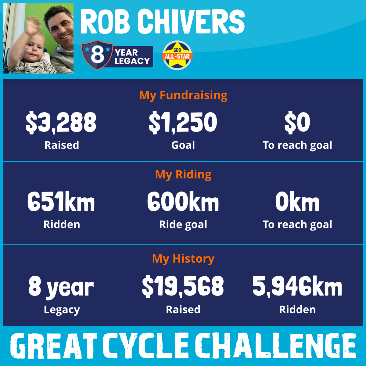 Thanks to your continued support, I'm again taking part in the Great Cycle Challenge to fight kids' cancer.