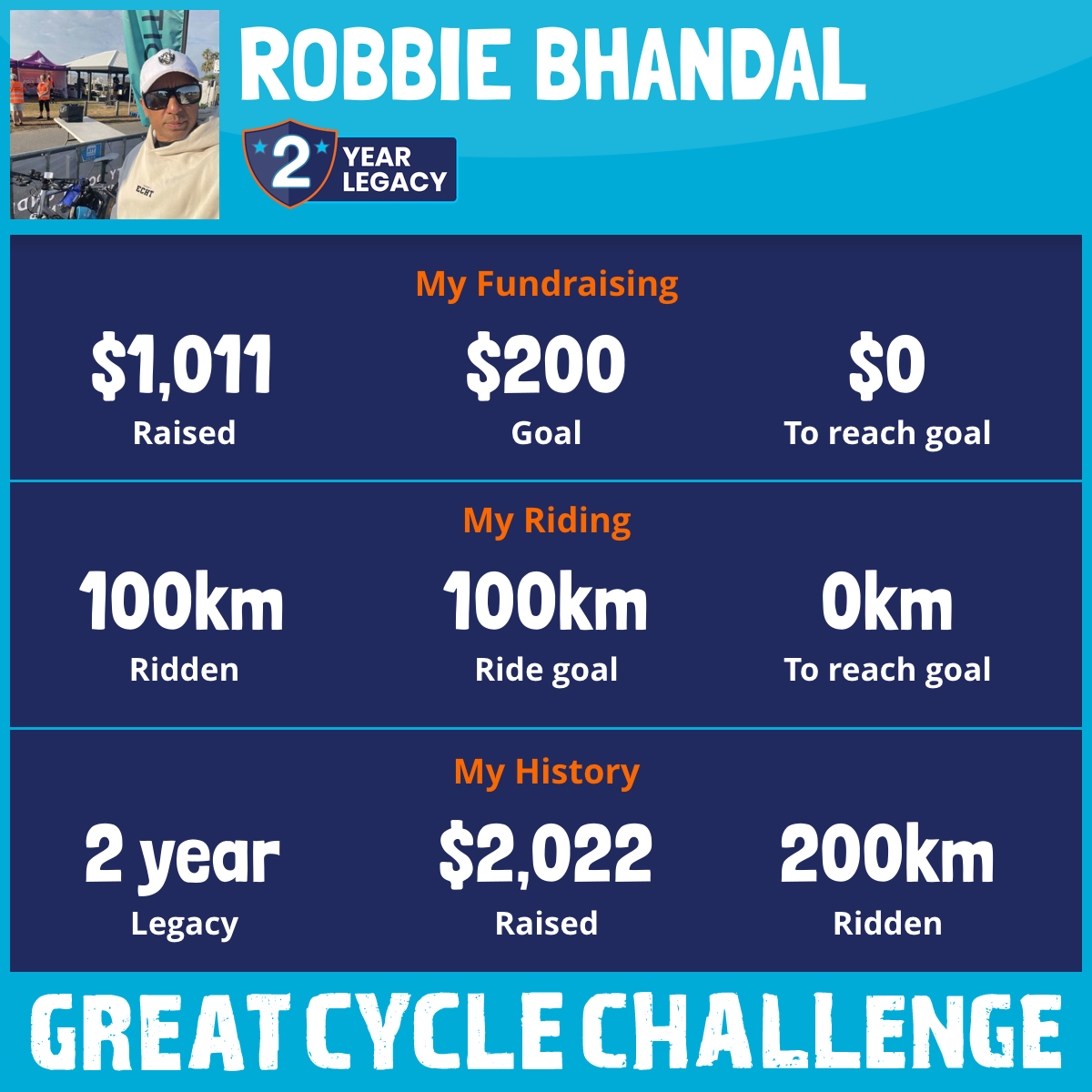 100 km Ridden$1,011 Raised2026