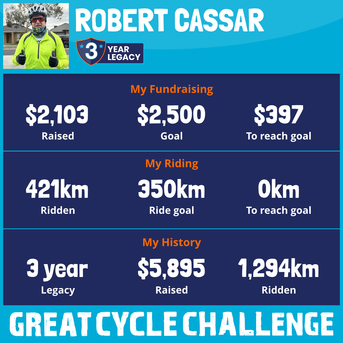 421 km Ridden$2,103 Raised2026