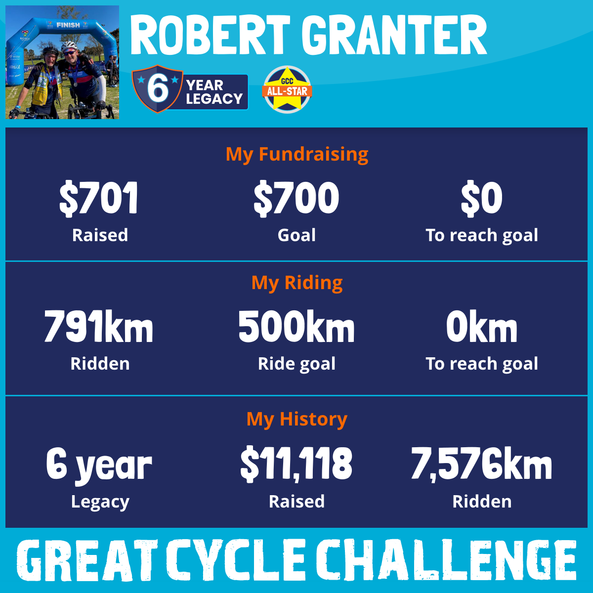 1,057 km Ridden$701 Raised2025