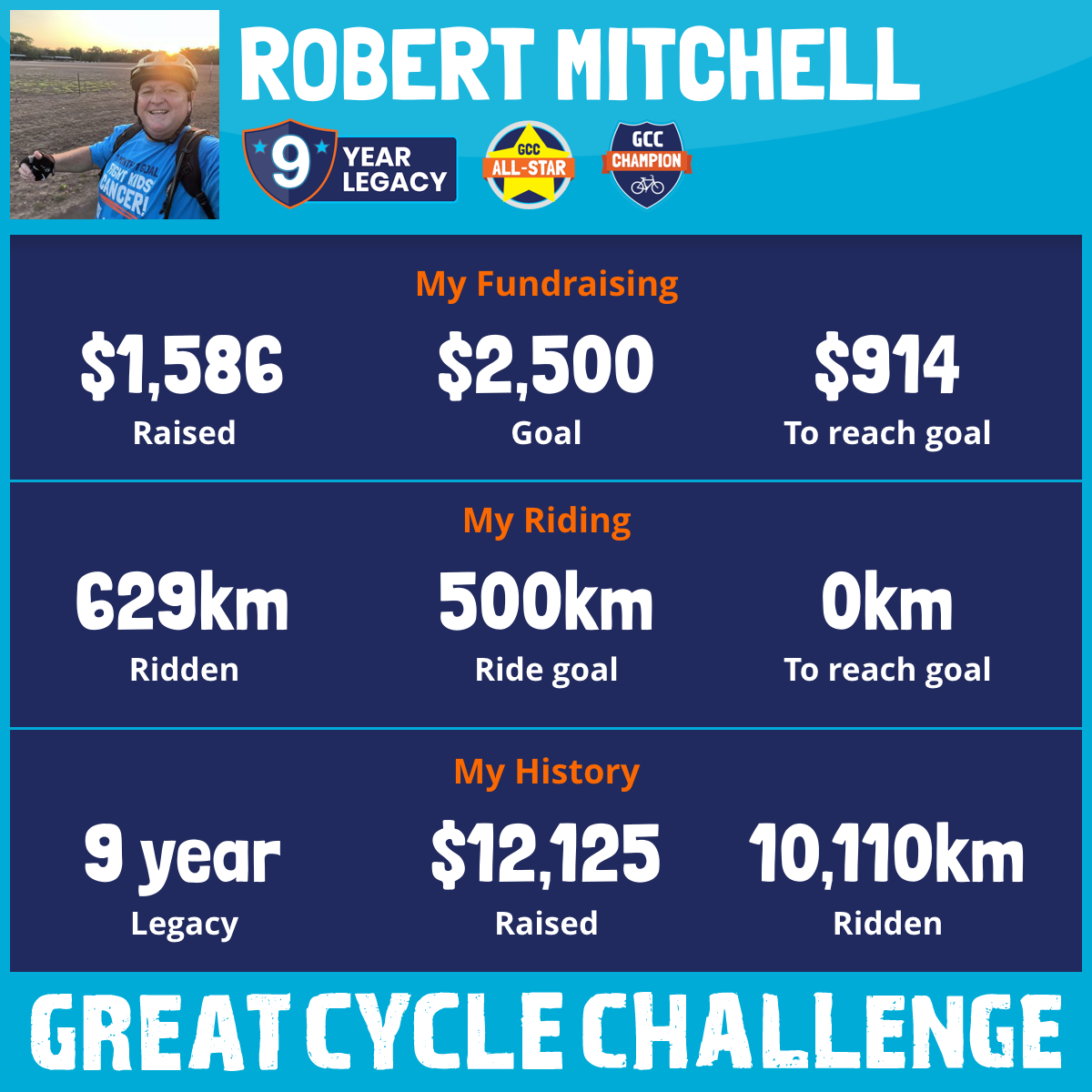 And so I am riding and raising funds to support the Children's Medical Research Institute to continue their work into the prevention, diagnosis, treatment and finding a cure for childhood cancer.