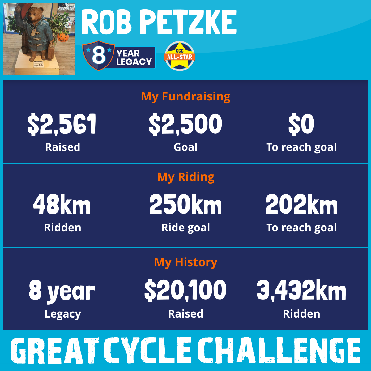 260 km Ridden$3,034 Raised2022