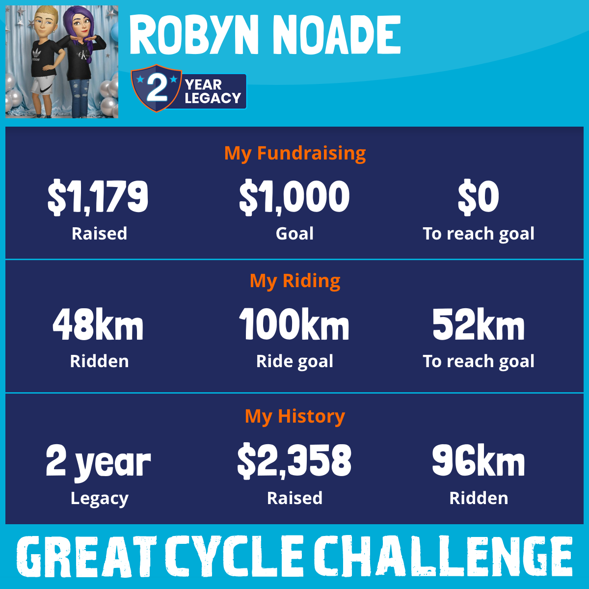 48 km Ridden$1,179 Raised2026