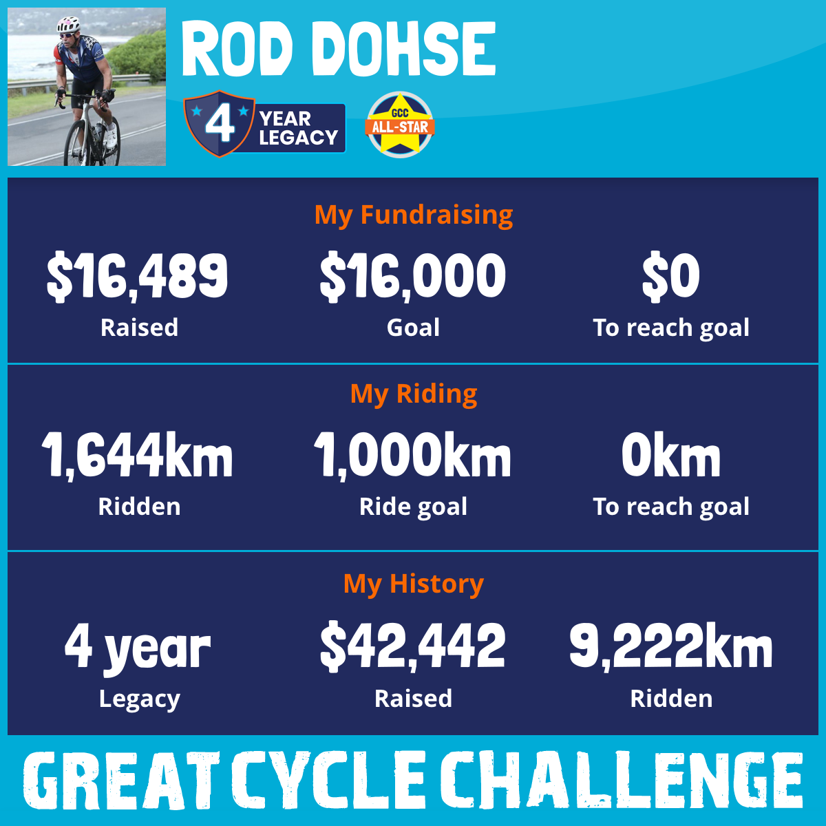 1,644 km Ridden$16,489 Raised2026