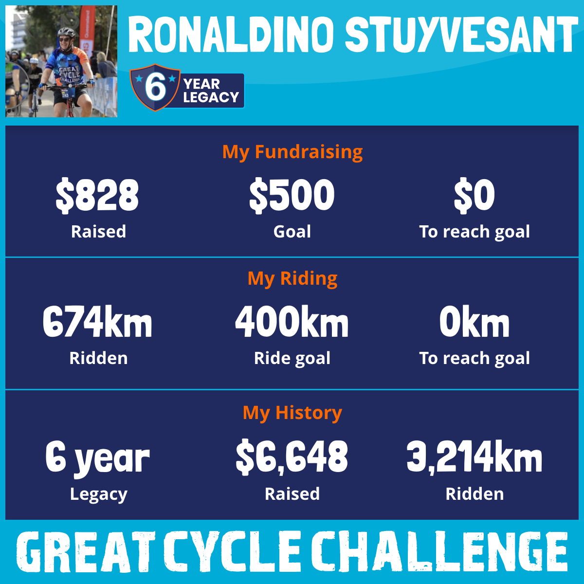 674 km Ridden$828 Raised2026