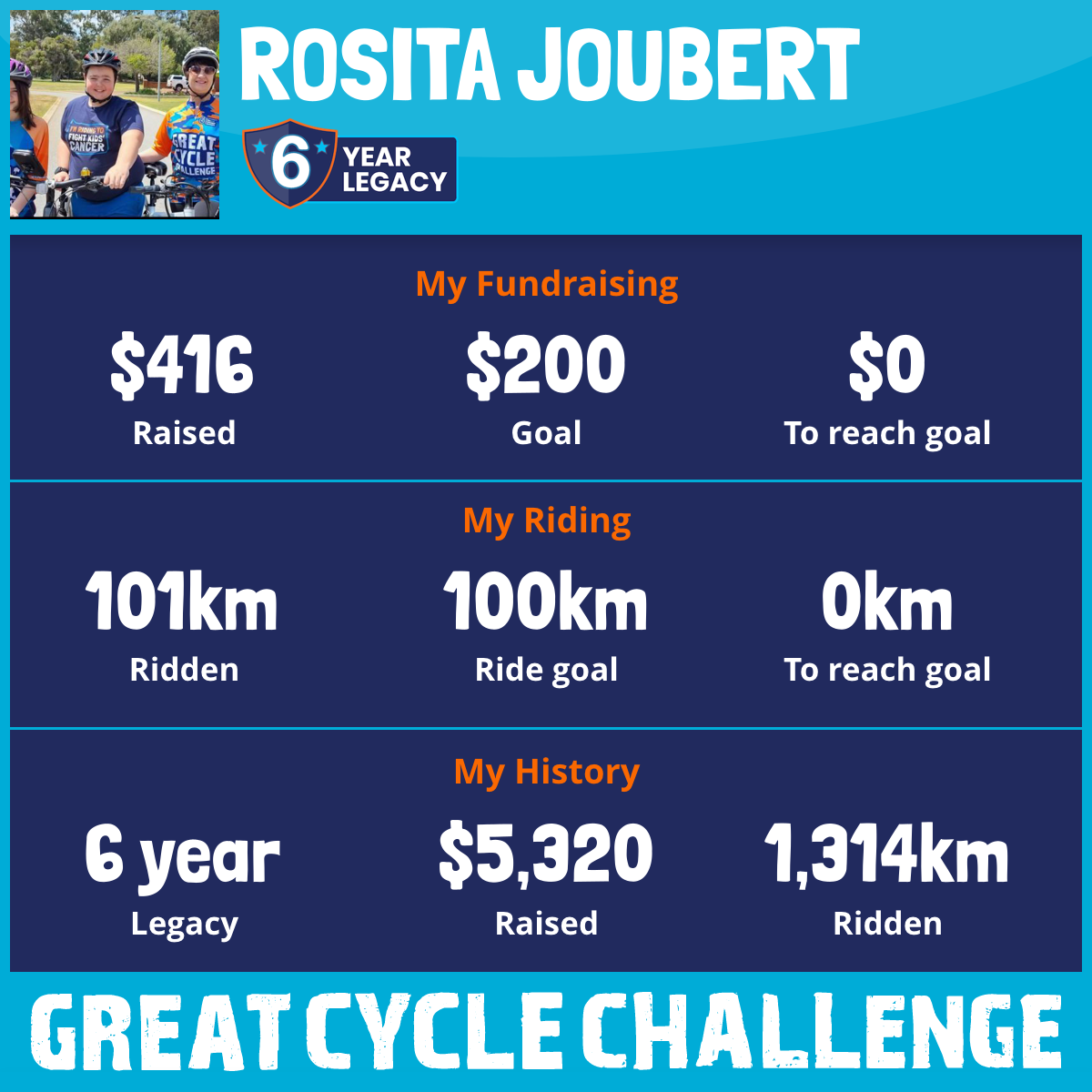 101 km Ridden$416 Raised2026