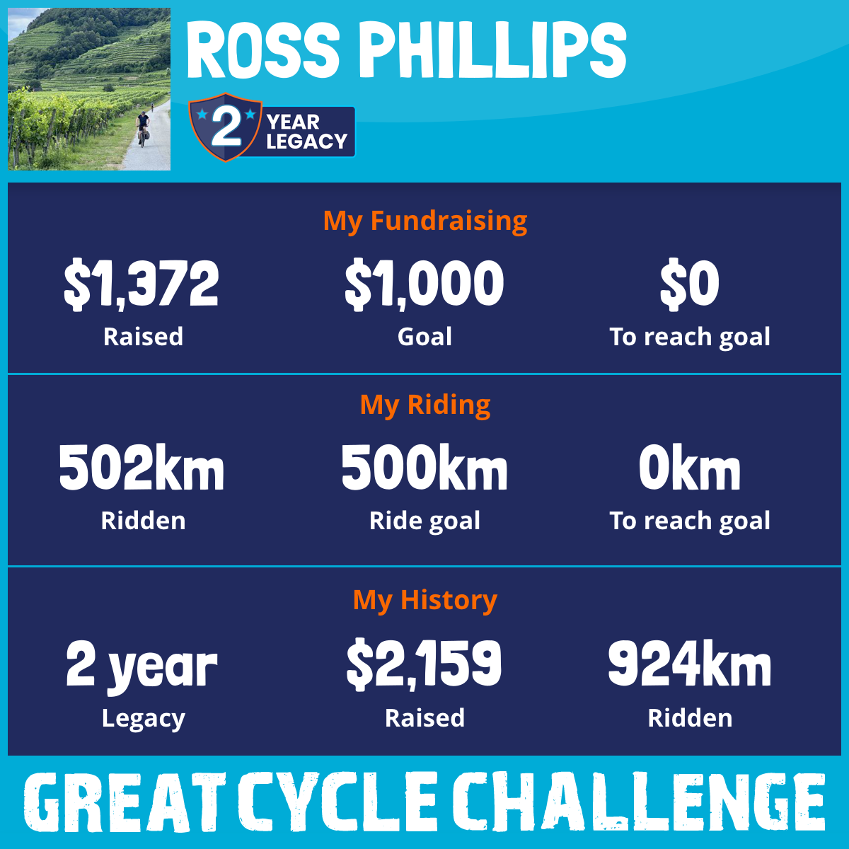 502 km Ridden$1,372 Raised2026