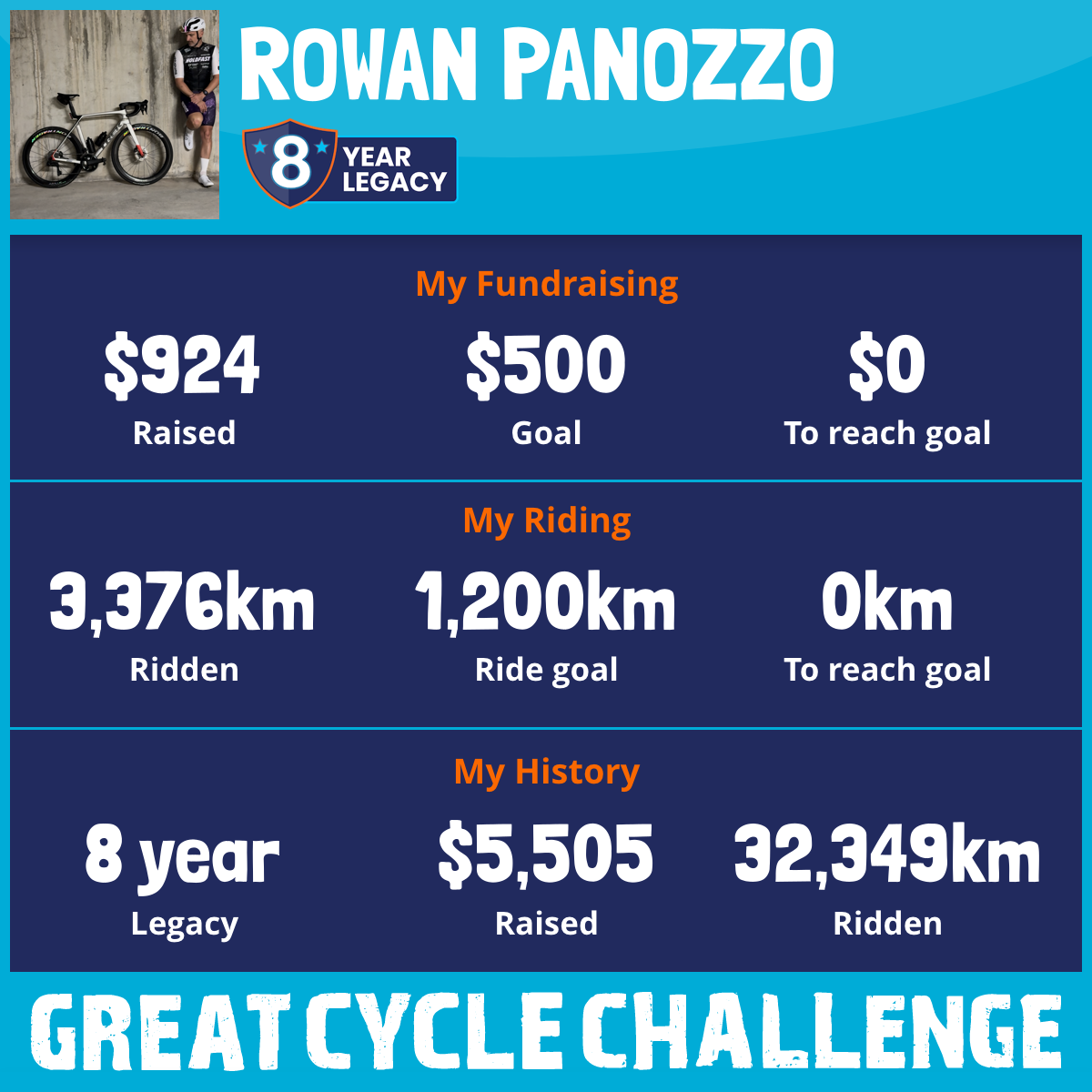 3,376 km Ridden$924 Raised2026
