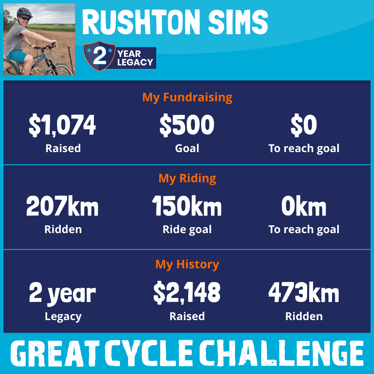 207 km Ridden$1,074 Raised2026
