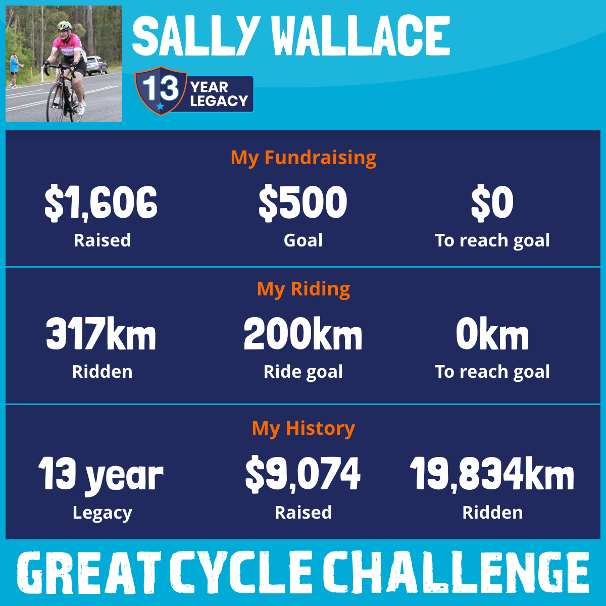 1,621 km Ridden$1,750 Raised2023