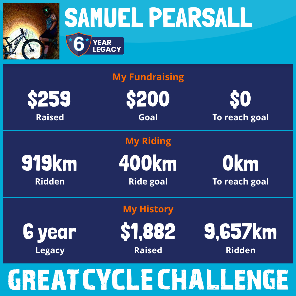 919 km Ridden$259 Raised2026