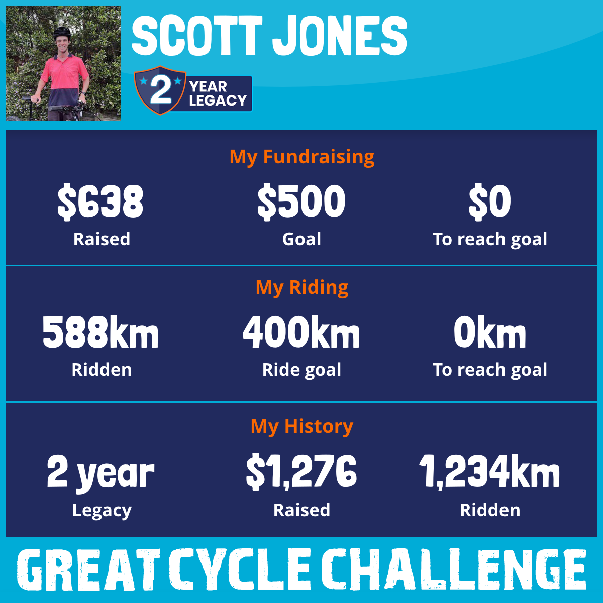 588 km Ridden$638 Raised2026
