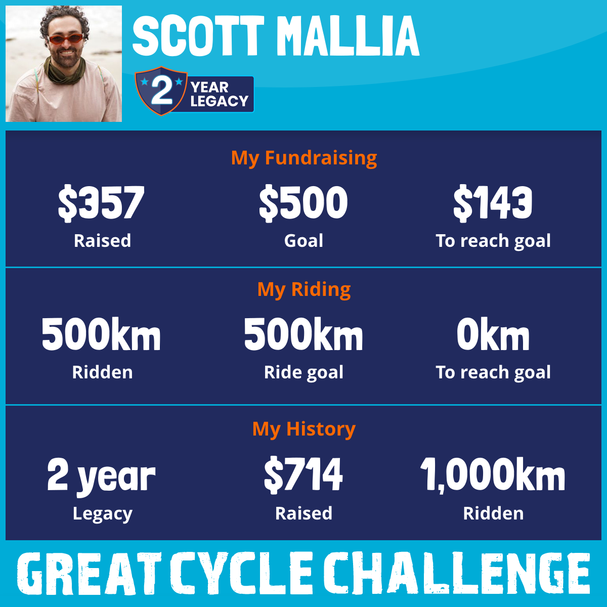 500 km Ridden$357 Raised2026