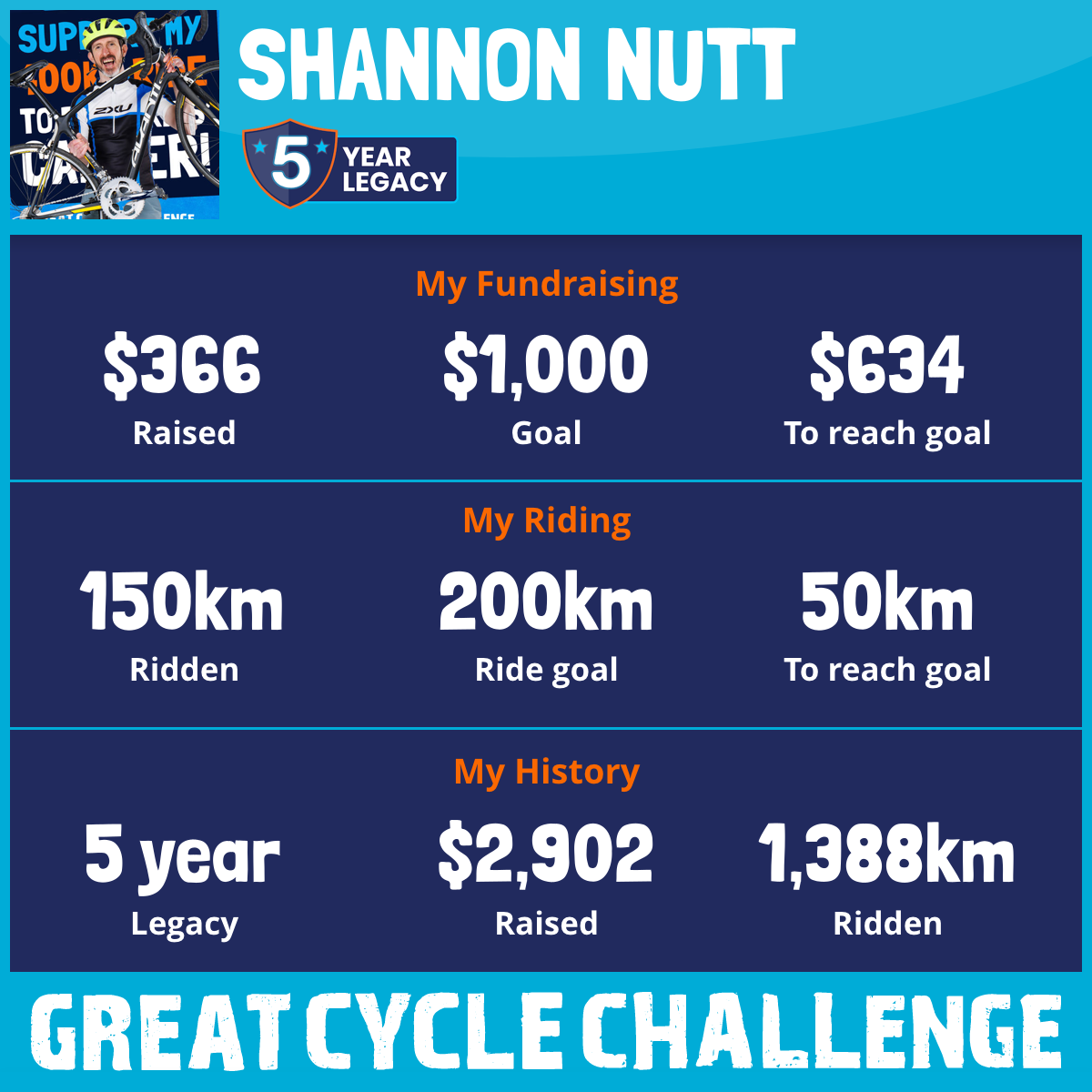 150 km Ridden$366 Raised2025