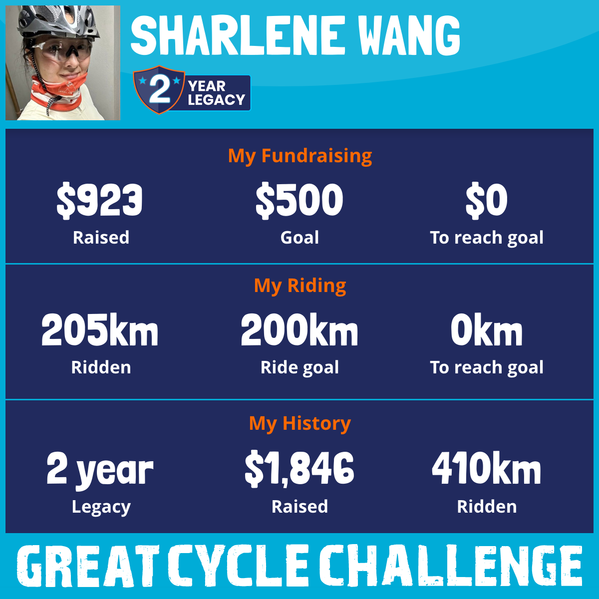 205 km Ridden$923 Raised2026