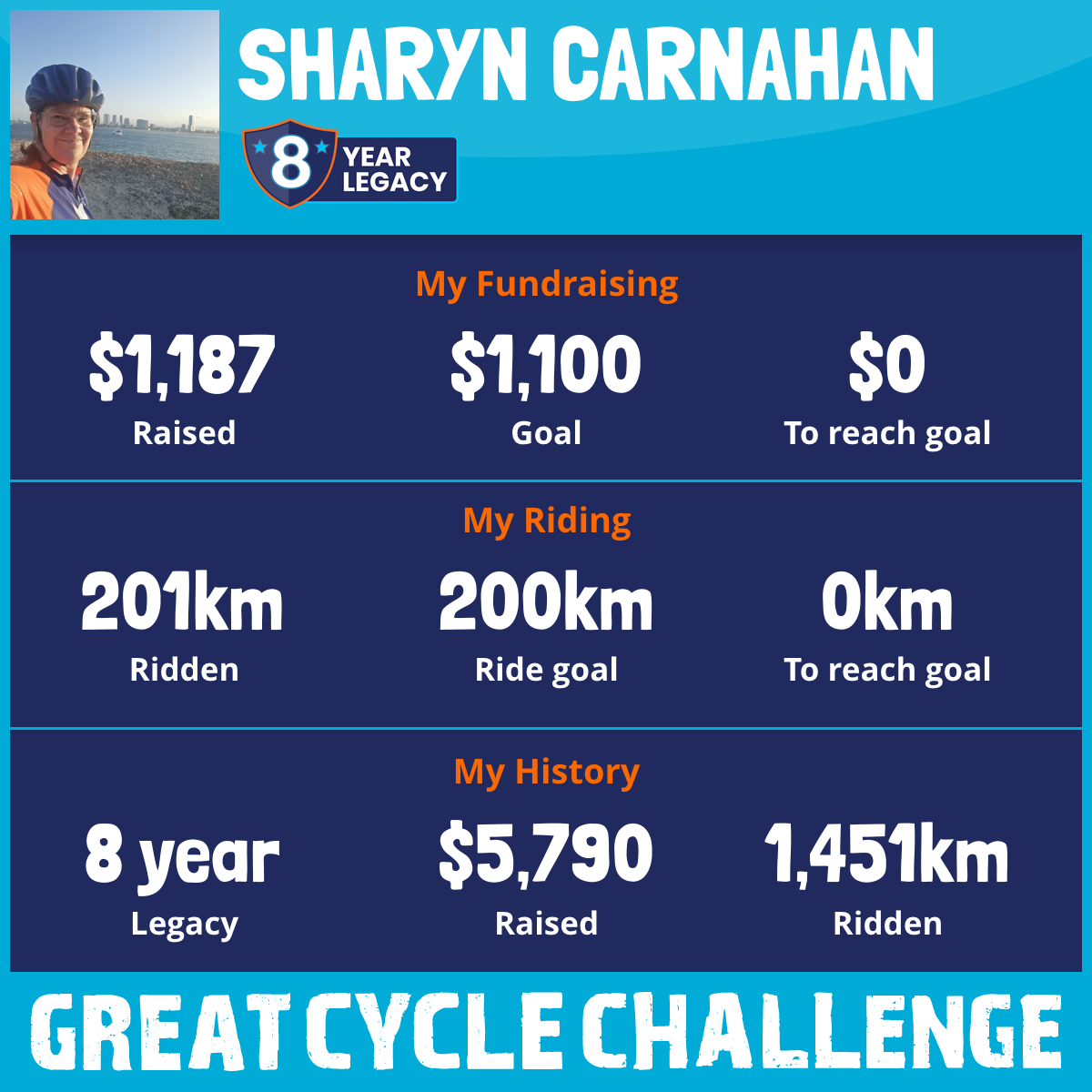 201 km Ridden$1,187 Raised2025