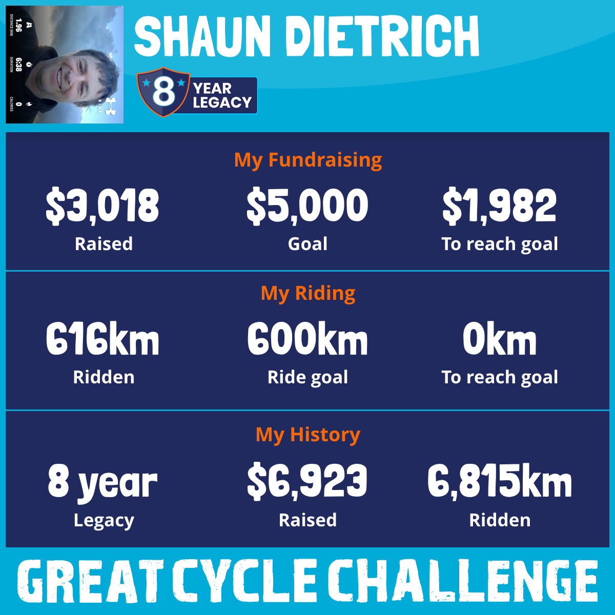 616 km Ridden$3,018 Raised2025