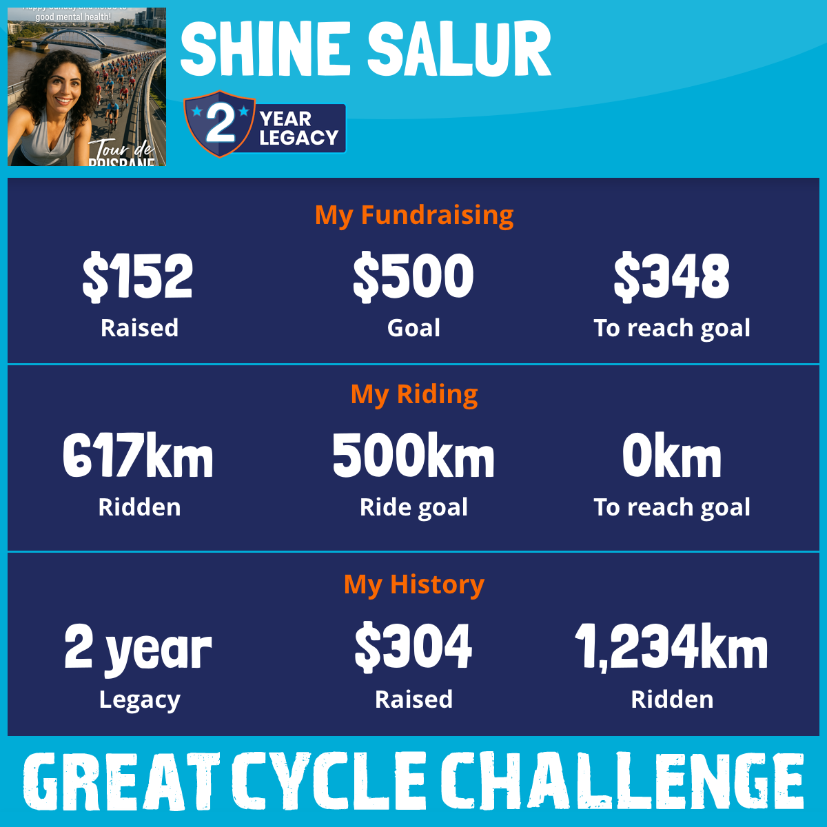 617 km Ridden$152 Raised2026
