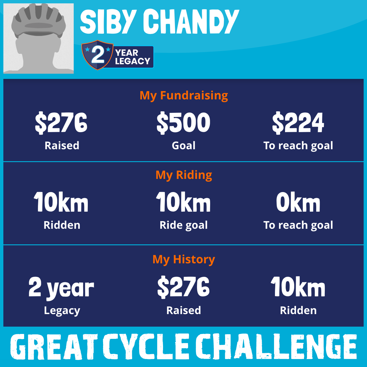 10 km Ridden$276 Raised2026