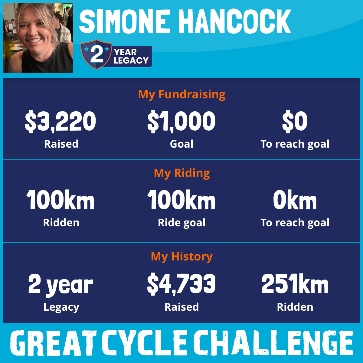 100 km Ridden$3,220 Raised2026