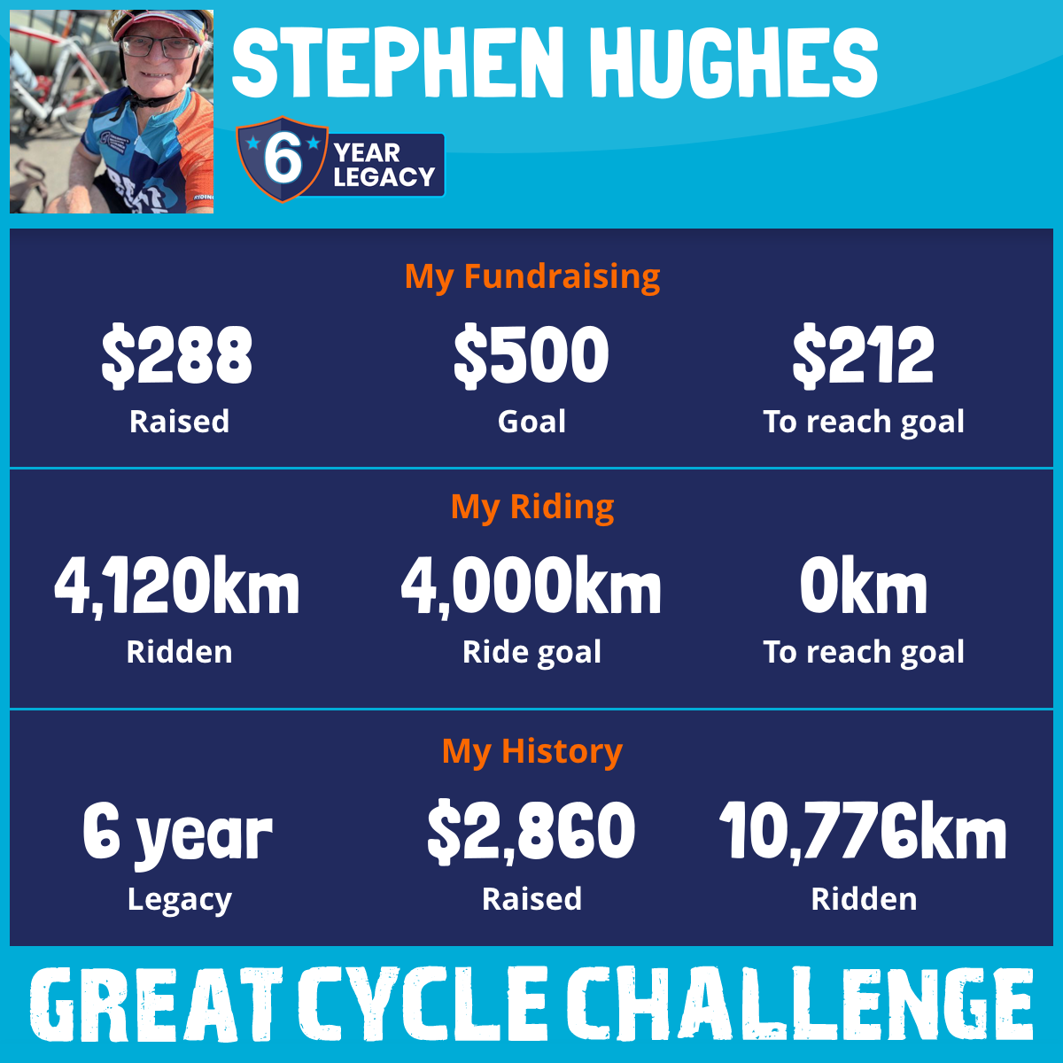 4,120 km Ridden$288 Raised2026