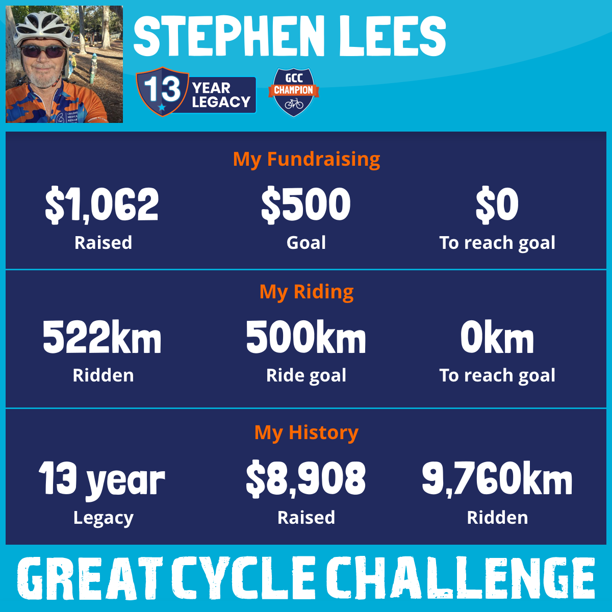 I'm doing this for all the people I know who have suffered with cancer and to help raise funds into research into kids' cancer. I can ride for those who can't.