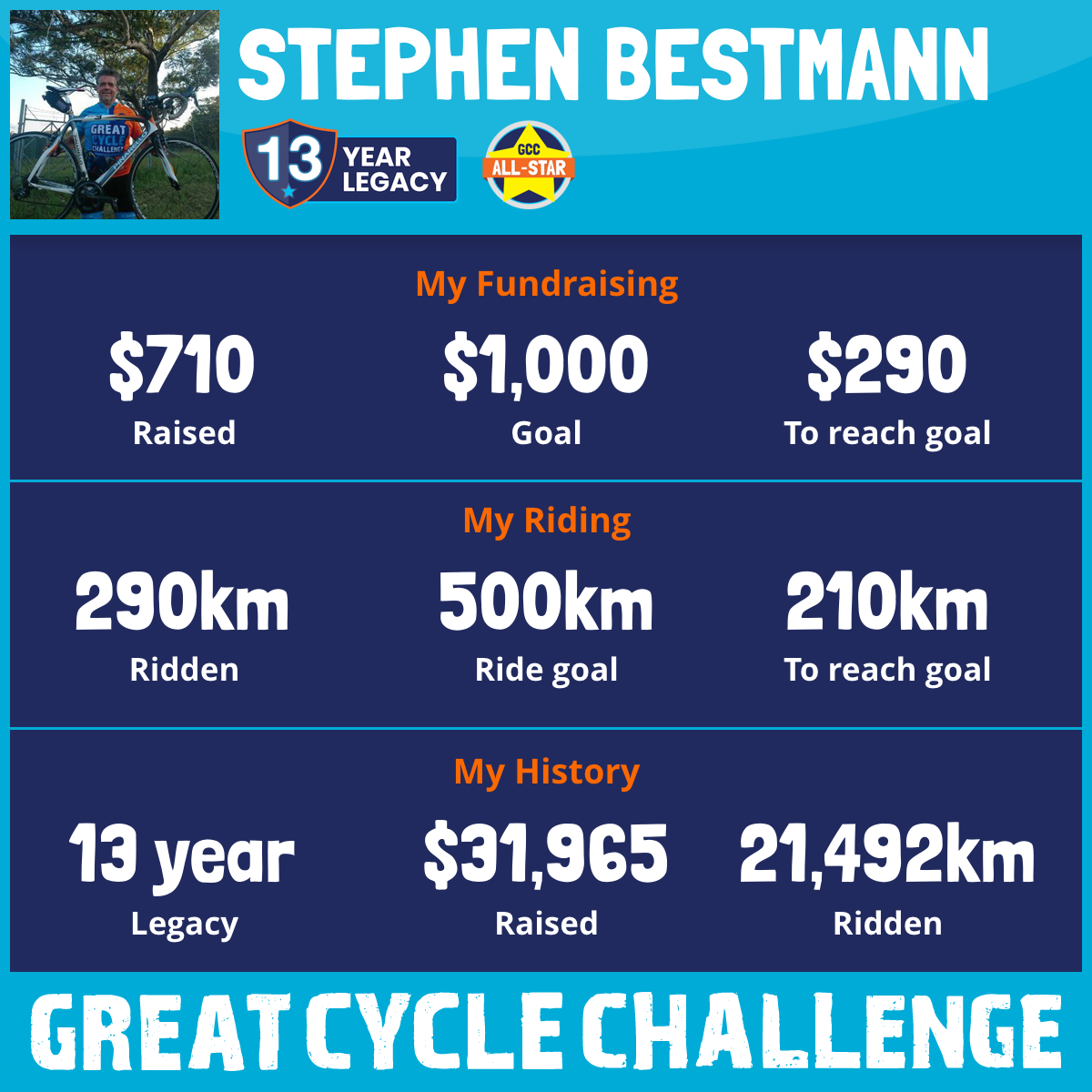 3,401 km Ridden$3,139 Raised2018