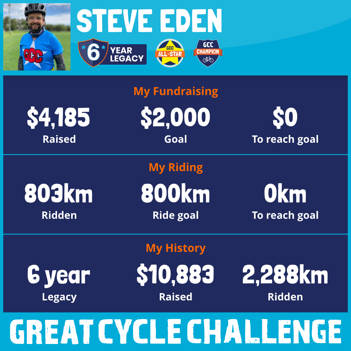 803 km Ridden$4,185 Raised2025