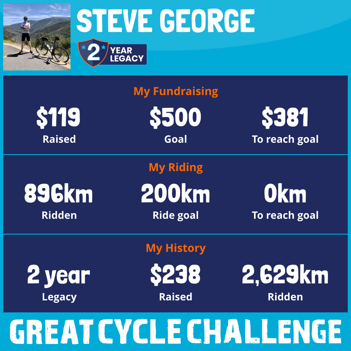 896 km Ridden$119 Raised2026