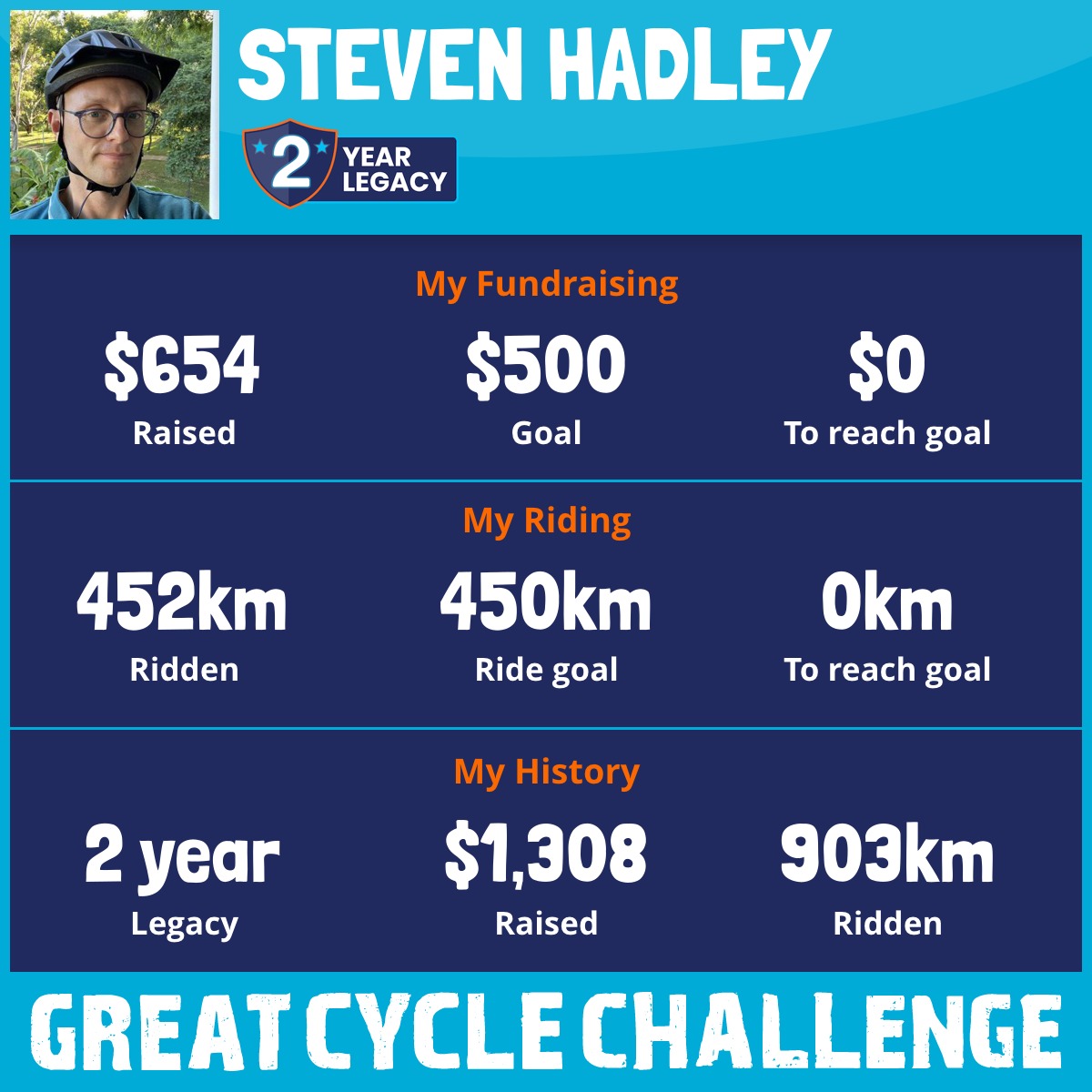 452 km Ridden$654 Raised2025