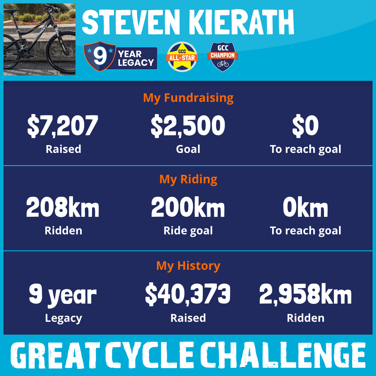 208 km Ridden$7,207 Raised2026