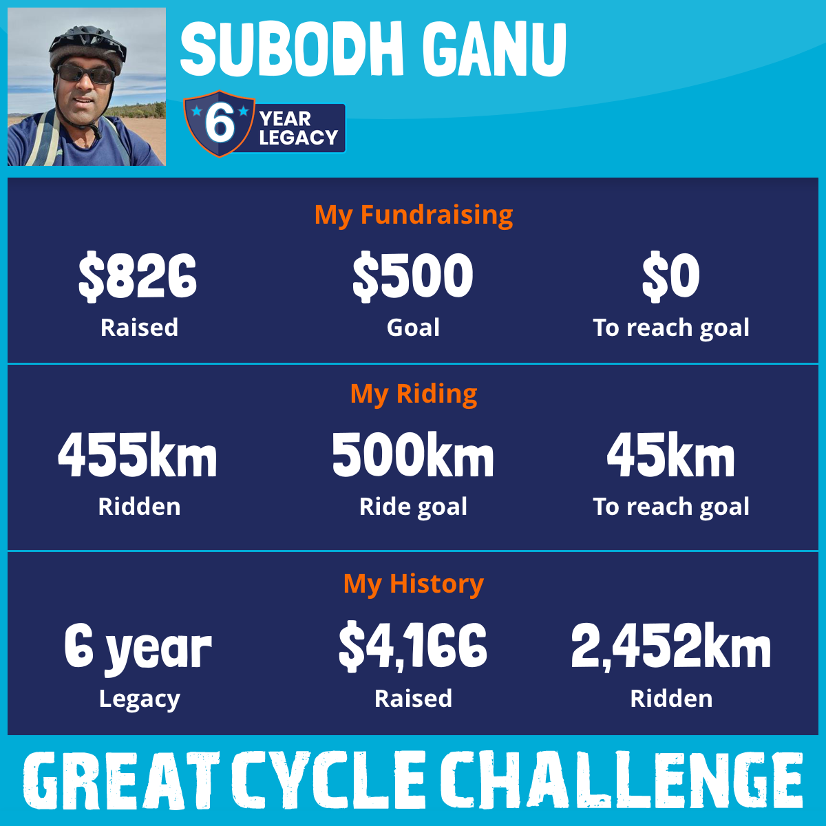 455 km Ridden$826 Raised2026