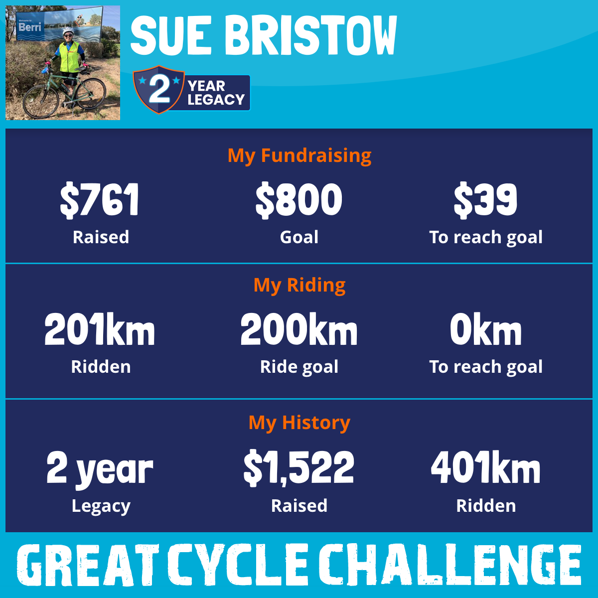 And so I am riding and raising funds to support the Children's Medical Research Institute to continue their work into the prevention, diagnosis, treatment and finding a cure for childhood cancer.