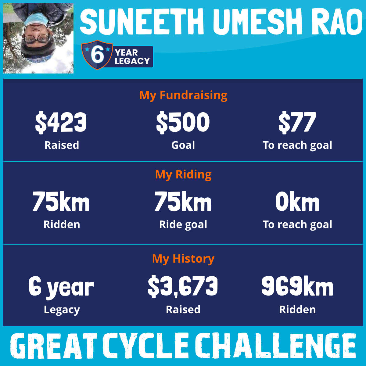 75 km Ridden$423 Raised2026