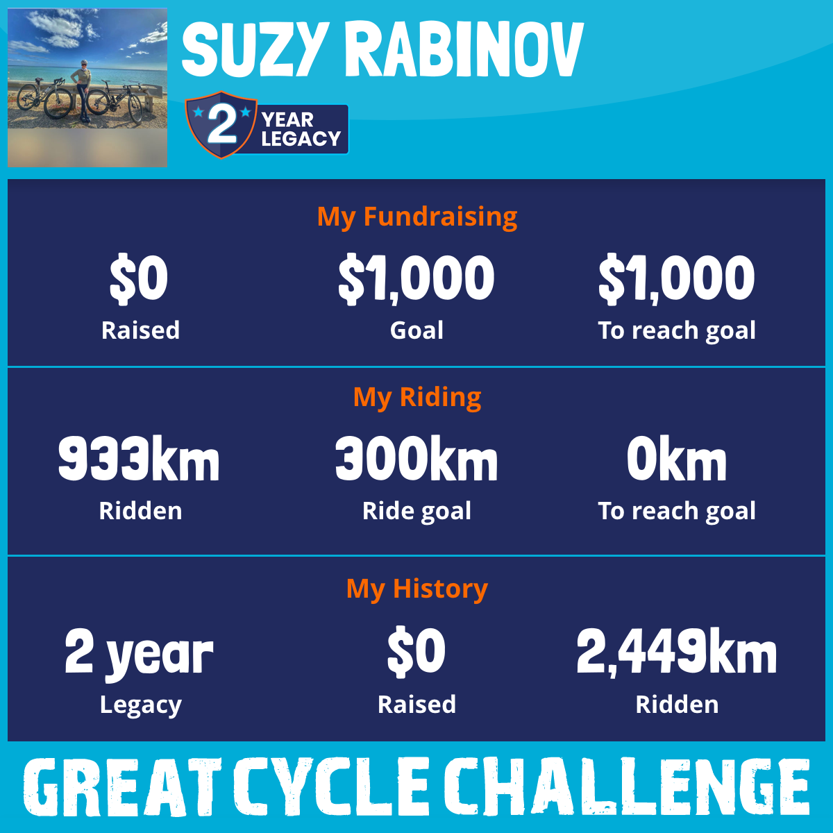 And so I am riding and raising funds to support the Children's Medical Research Institute to continue their work into the prevention, diagnosis, treatment and finding a cure for childhood cancer.