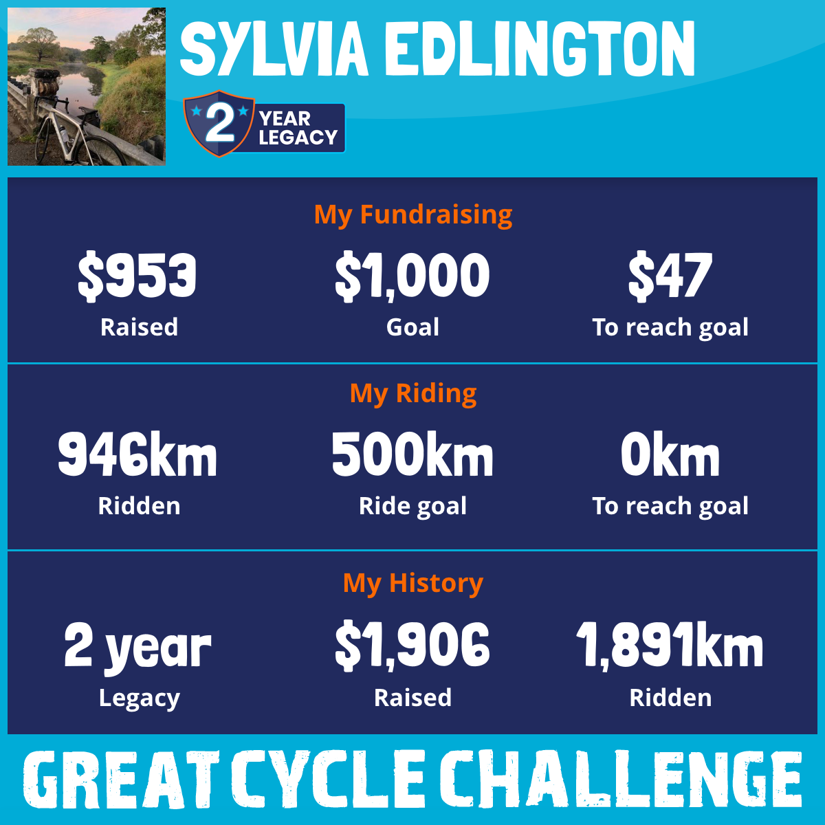946 km Ridden$953 Raised2025