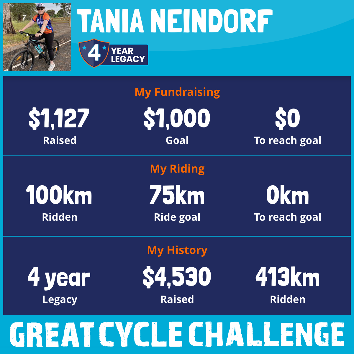 104 km Ridden$1,143 Raised2023