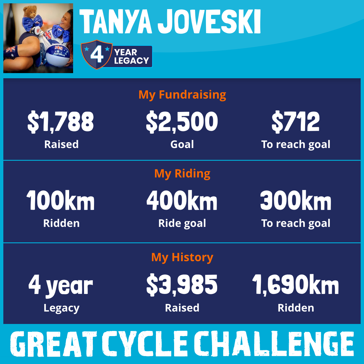 And so I am riding and raising funds to support the Children's Medical Research Institute to continue their work into the prevention, diagnosis, treatment and finding a cure for childhood cancer.