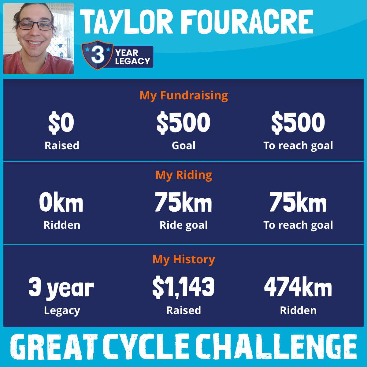 474 km Ridden$1,143 Raised2020