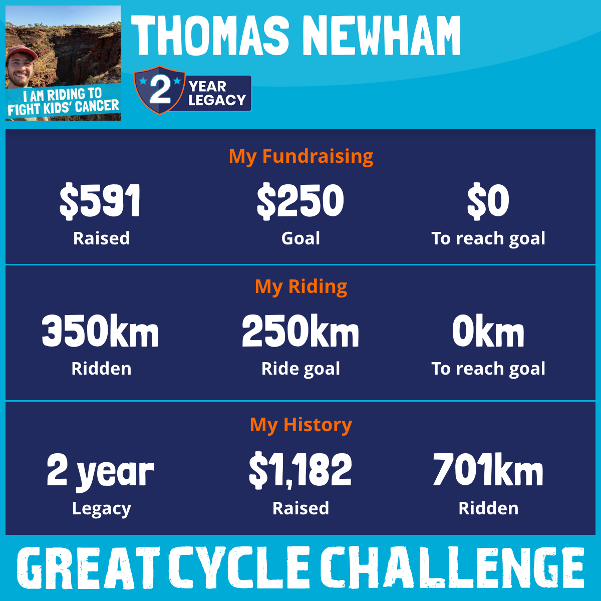 And so I am riding and raising funds to support the Children's Medical Research Institute to continue their work into the prevention, diagnosis, treatment and finding a cure for childhood cancer.