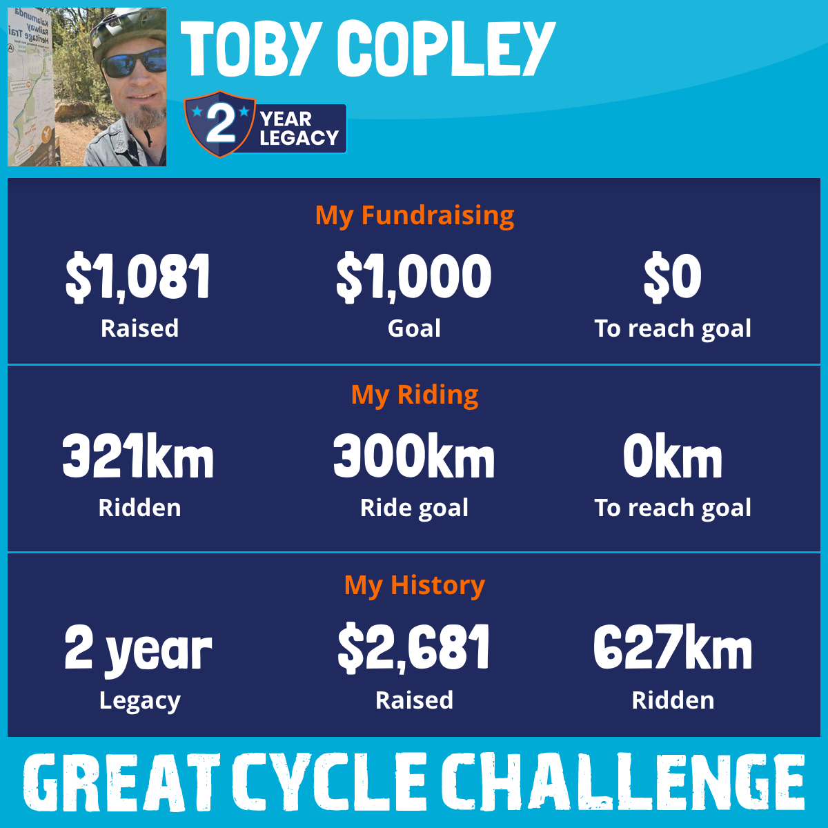 321 km Ridden$1,081 Raised2026